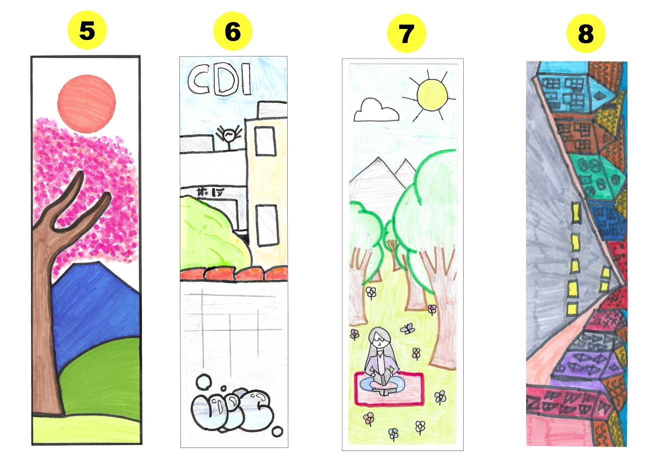 concours de marque-pages dessinés par des élèves pour devenir les marque-pages officiels du CDI en 2026 : thème "Villes et campagnes"