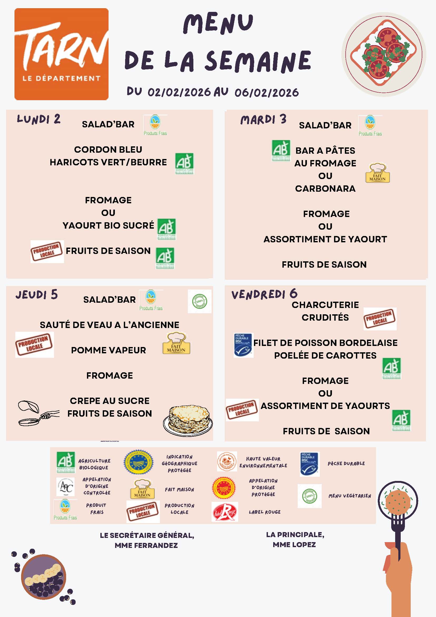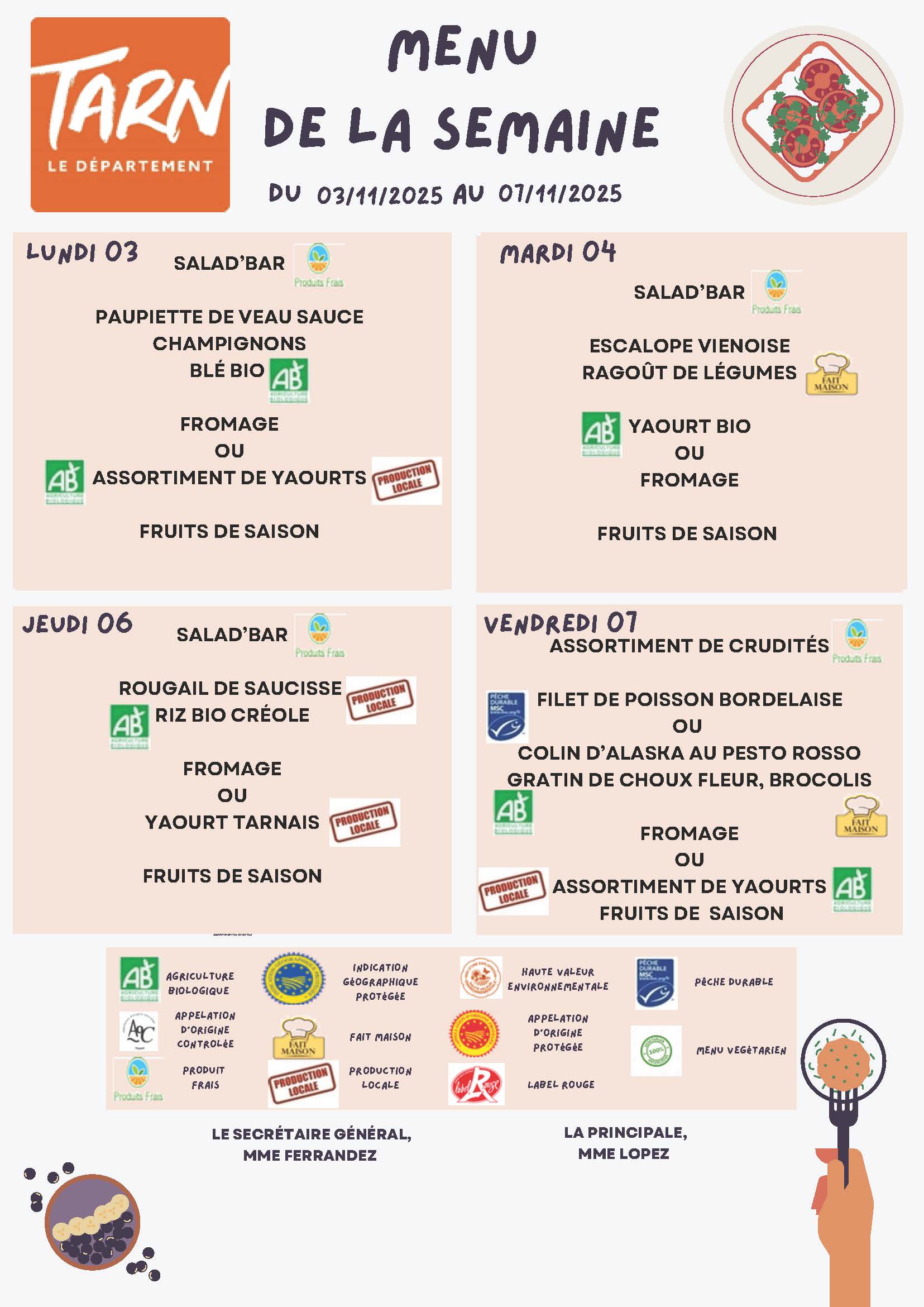 🍽️ Menus de la cantine