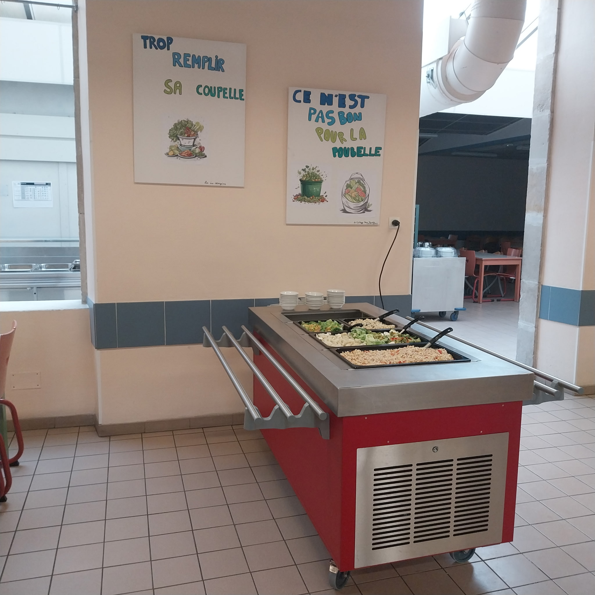Les éco-délégués ont créé des pancartes pour alerter les élèves sur le gaspillage alimentaire : slogan par les 6°, choix de la typographie et création des lettres par les 5°, illustrations par les 4°.